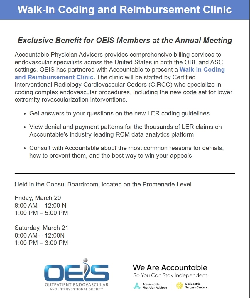 In support of improving patient care, this activity has been planned and implemented by CineMed and Outpatient Endovascular and Interventional Society. CineMed is jointly accredited by the Accreditation Council for Continuing Medical Education (ACCME), the Accreditation Council for Pharmacy Education (ACPE), and the American Nurses Credentialing Center (ANCC), to provide continuing education for the healthcare team.